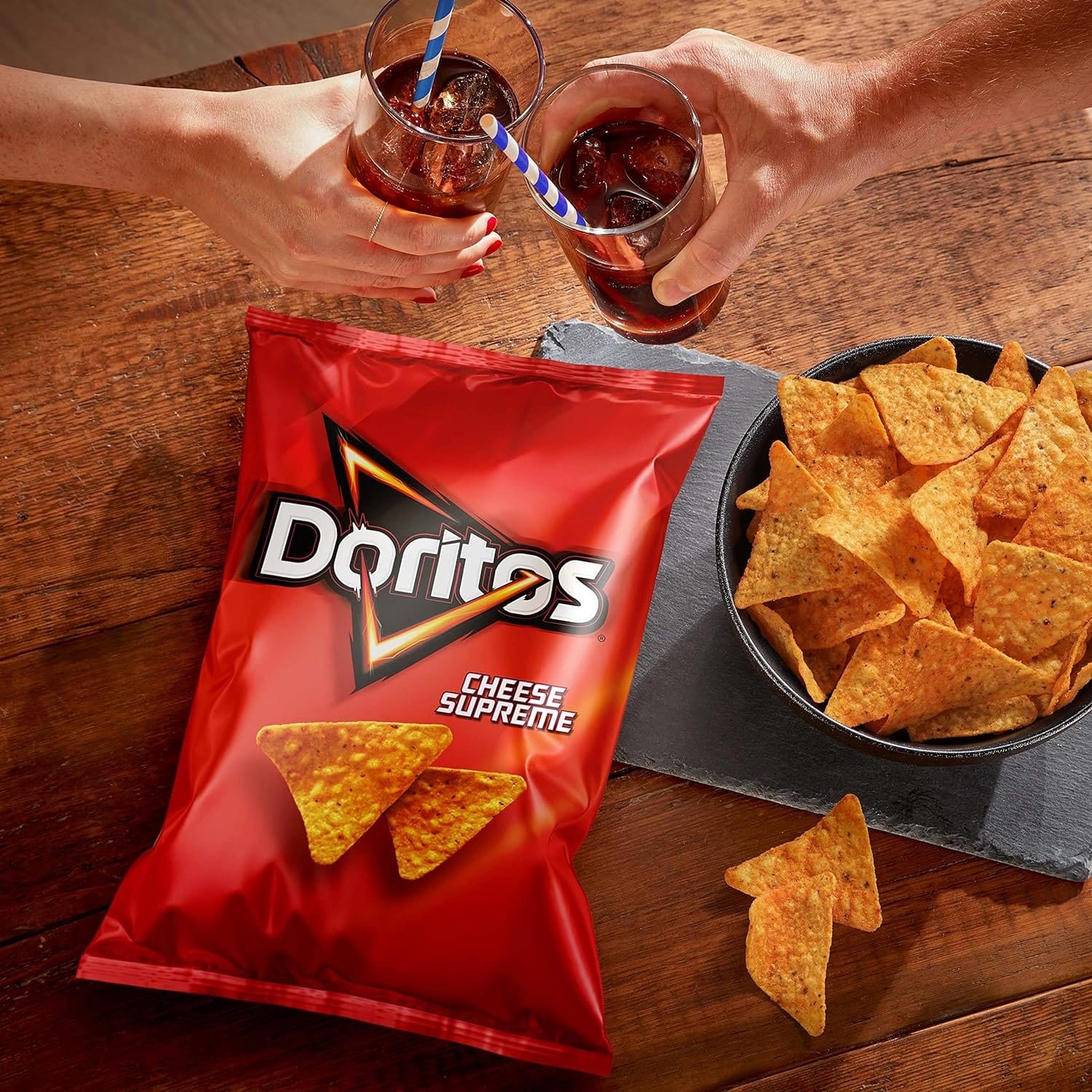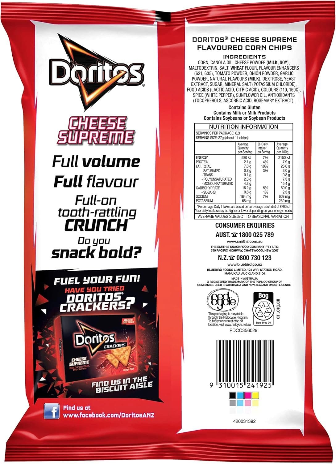 “Bold Cheese Snacks with Unmistakable Crunch There’s nothing quite like the cheesy tooth-rattling crunch of Doritos Cheese Supreme corn chips. These high-quality corn tortilla chips are exploding with a bold cheesy flavour that’s sure to pack a flavourful punch. Doritos are a cheese-flavoured chip loved by millions around the world for that intense cheesy flavour that’s certain to inspire and arouse adventure. Perfect for Entertaining Company Whether you’re looking for that flavoursome fan-favourite to bring along to a gathering or looking to fuel your late-night gaming grind, this triangular gen-z icon never fails to excite. Chips? Nachos? Anything. In fact, it’s so good that it makes a fantastic addition to your meal as a seasoning or even just to give your dinner that extra crunch factor. Want to Doritos-fy your favourite dishes? Maybe a Doritos Mac & Cheese for that oh-so-satisfying crunch or an even cheesier toastie with our mind-boggling seasoning? The Boldest of Cheese Snacks Rest assured, Doritos are made in Australia from carefully selected ingredients that provide you with the unmistakably bold flavour we all know and love. The only thing you need to worry about is whether there’ll be enough to go around! The only love triangle you’ll ever want or need.”