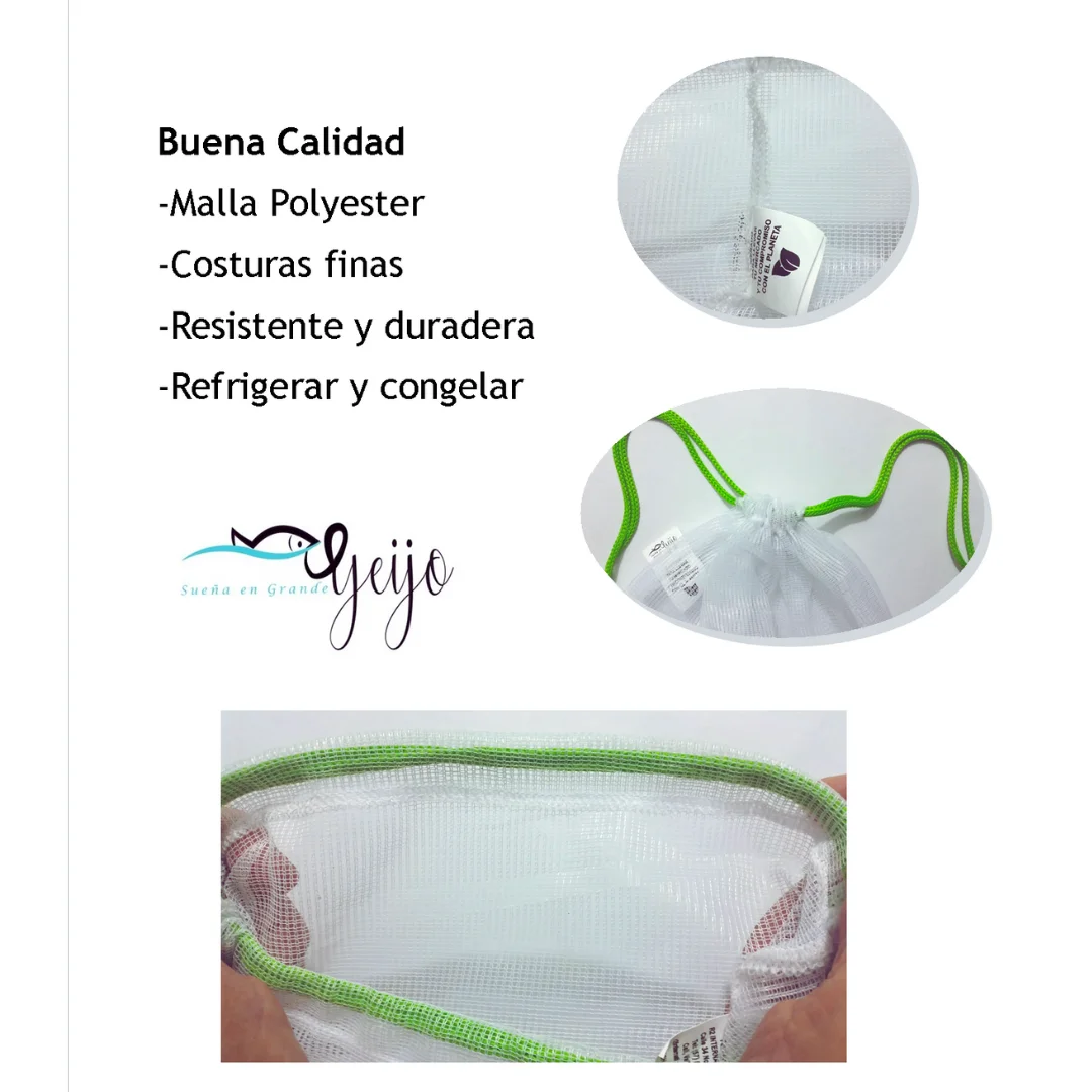 Las Bolsas Reutilizables Para Mercar de la marca Yeijo son el complemento perfecto para tus compras diarias. Con un set de 3 bolsas fabricadas en tela de malla poliéster, podrás llevar tus productos de forma segura y cómoda. Estas bolsas son ideales para reducir el uso de bolsas plásticas y contribuir al cuidado del medio ambiente. Además, su diseño resistente y duradero garantiza que podrás utilizarlas una y otra vez sin preocuparte por su deterioro. Olvídate de las bolsas desechables y apuesta por una opción más sostenible con las Bolsas Reutilizables Para Mercar de Yeijo.